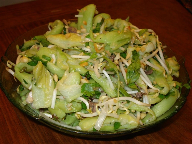 Kicker: Taro salad not only makes dinner’s meal more appetite but also helps to cool down summer heat very effectively. — Photo congthucmonngon.com