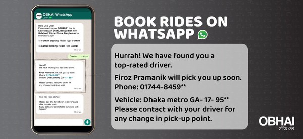 "WhatsApp OBHAI booking will help a lot of OBHAI users to simply order an OBHAI Gari, OBHAI CNG, and even order OBHAI Express services in few key strokes," said Anis Ahmed, Startup Founder, and Investor of Obhai Solutions Ltd.