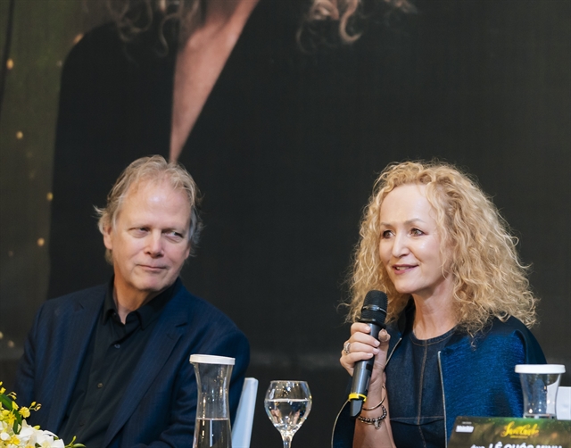 | Norwegian composer and pianist Rolf Løvland and Irish violinist Fionnuala Sherry speak with local media on Friday morning. Photos courtesy of Nhân Dân newspaper |