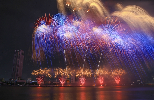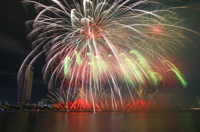 | Martarello Group from Italy decorate the Hàn River of Đà Nẵng City with their fireworks performance in the fifth night of the Đà Nẵng International Fireworks Festival. — Photo courtesy of DIFF |