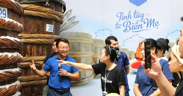 | Visitors learn about the fermentation process of Lê Gia fish sauce. — VNA/VNS Photo |
