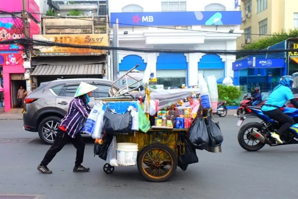 In HCM City, there is not a main road free of street sellers. From small stalls to carts, walkers and more advanced setups, tourists do not have to go far to experience something quintessentially Việt Nam. Motorbike commuters never have to enter a shop to get their cà phê (coffee) and breakfast on the way to work. Those travelling home in the afternoon can even buy a whole gà nướng (BBQ chicken) or vịt quay (BBQ duck) without leaving their motorbike seat.