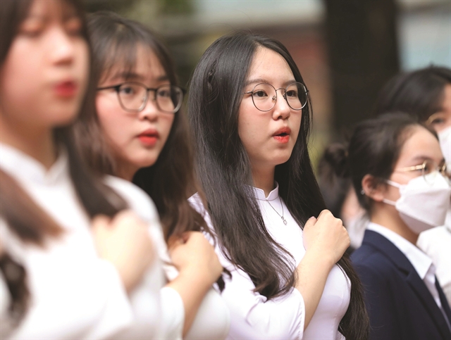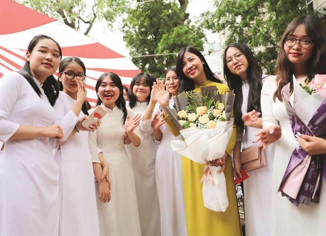 Twelfth graders of the Việt Đức High School are pictured with their teacher on the graduation day. VNA/VNS Photos Thanh Tùng