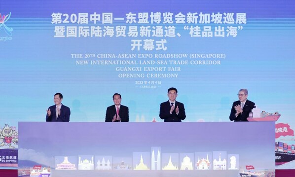On April 4, the 20th China-ASEAN Expo Roadshow came to Singapore, Liu Ning, Secretary of CPC Guangxi Zhuang Autonomous Regional Committee, and Tan Kiat How, Senior Minister of State of Ministry of Communications and Information & Ministry of National Development of Singapore, attended the event.