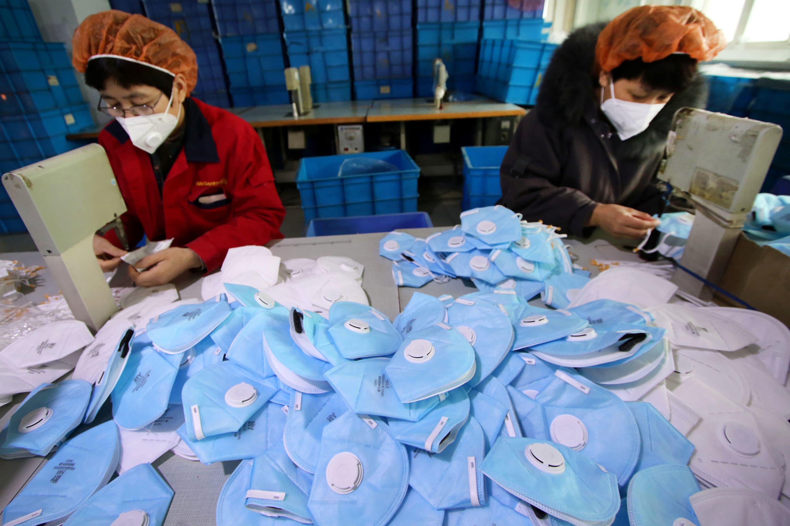 Workers make protective masks at a factory in Handan, Hebei province, China January 22, 2020.