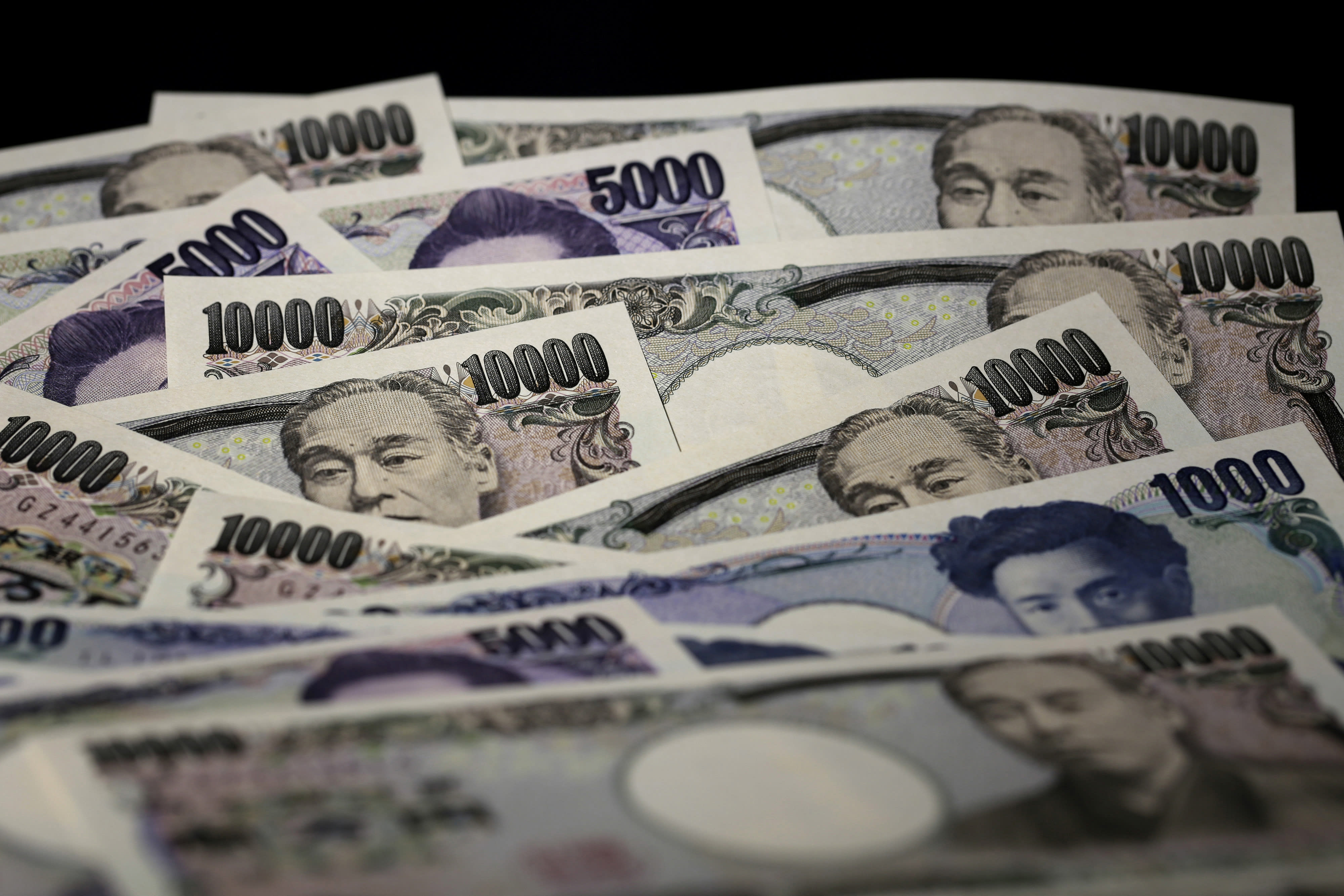 Japanese yen banknotes of various denominations are arranged for a photograph in Tokyo, Japan, on July 22, 2015.