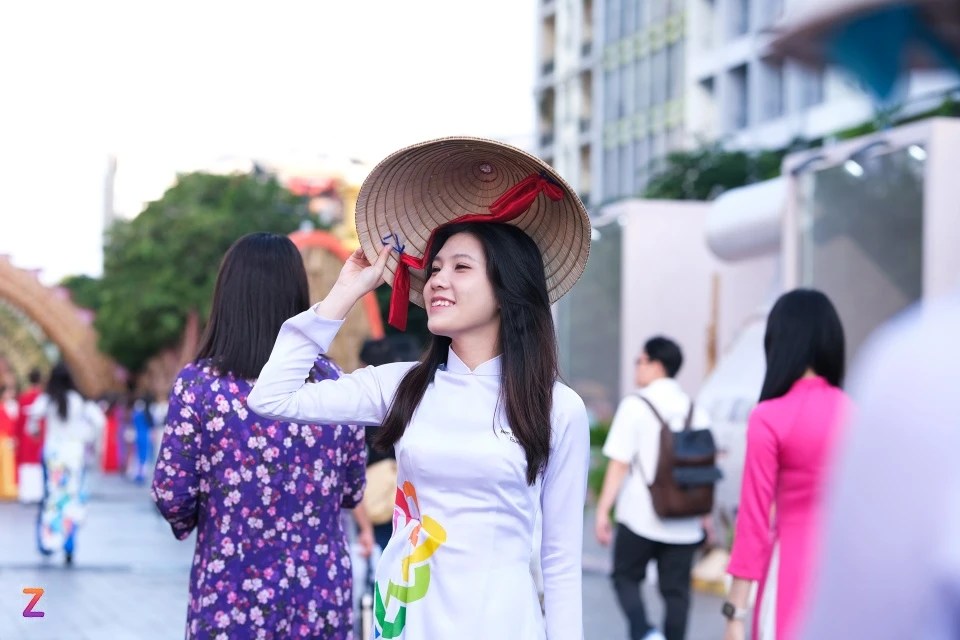 Home Trending Thousands of people wear ao dai to celebrate March 8 on Nguyen Hue Pedestrian Street