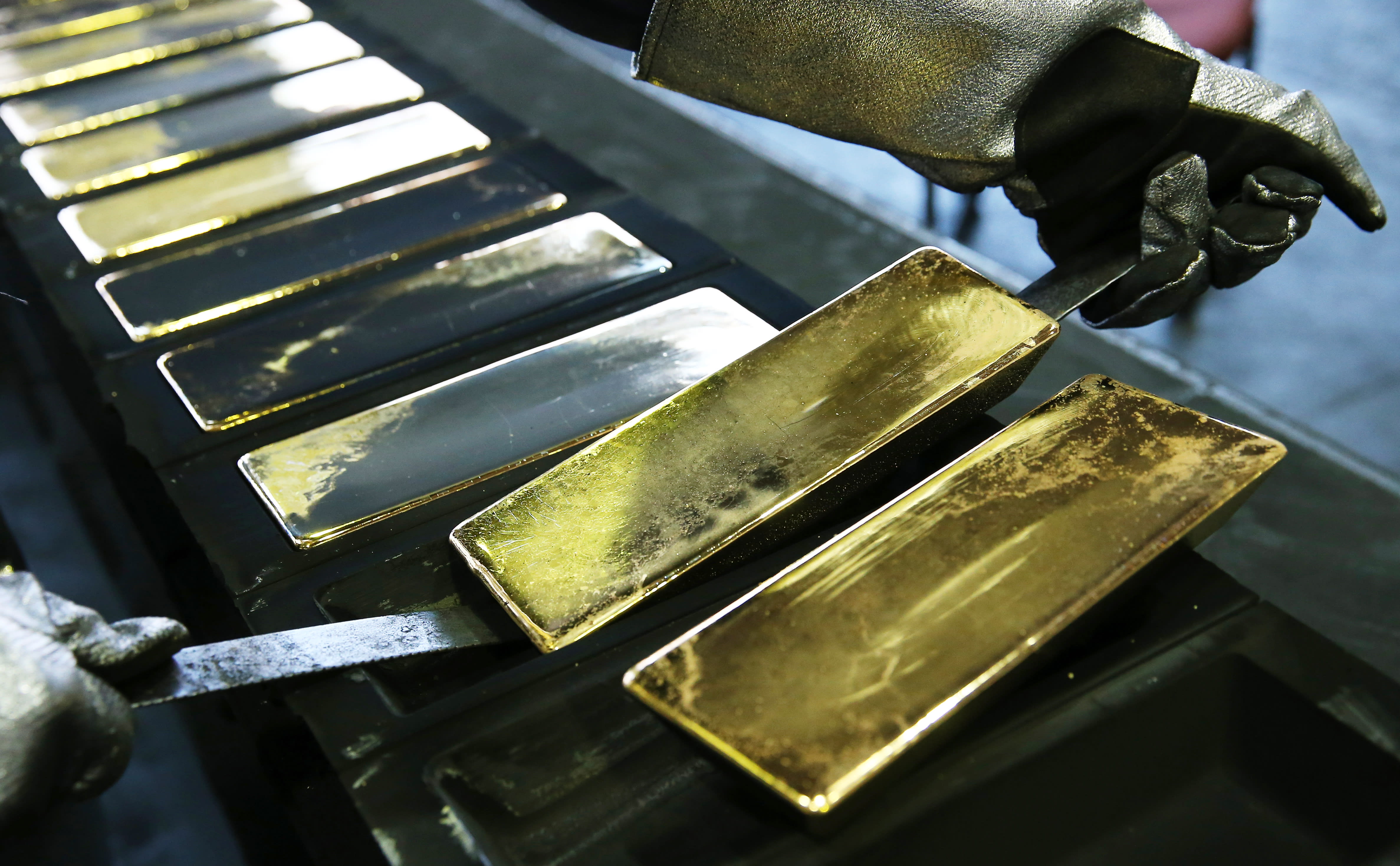 Gold bars being manufactured at the Prioksky plant of non-ferrous metals in the town of Kasimov.