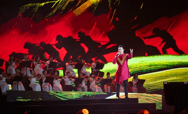 | Singer Đông Hùng performs in the art programme ‘Tổ Quốc Trong Tim’ (Homeland in Our Hearts) in August 2025. Most of the Việt Nam Centre for Protection of Music Copyright’s royalties come from performances and live entertainment, including events, shows, and concerts. Photo dantri.com.vn |