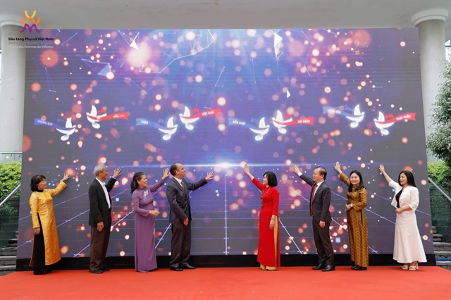 | Delegates put buttons to open the Everlasting Friendship exhibition at the Vietnamese Women’s Museum in Hà Nội on December 5. — Photo courtesy of.Vietnamese Women’s Museum |