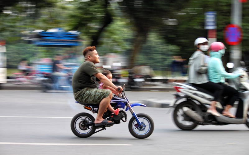 A man riding a mini-motorbike in Hanoi’s street @ Yu Jason