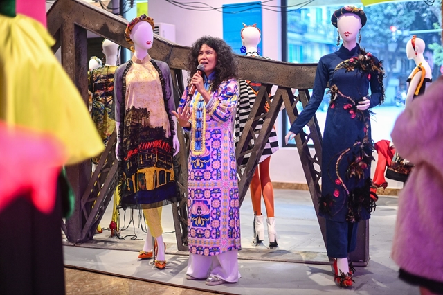 | Fashion designer Thủy Nguyễn is pictured at Thuỷ Nguyễn – Mộng Bình Thường (Thủy Nguyễn – An Everyday Dream) exhibition that displays her 60 designs of áo dài (Vietnamese traditional long dress). Photo courtesy of the artist |