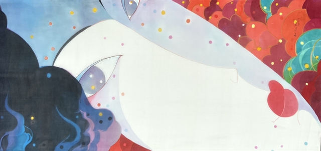 | ART FOR GOOD: Silk painting ‘Tuổi Mộng Mơ’ (A Girl’s Dream) by Bùi Tiến Tuấn is on display at the virtual exhibition ‘Xuôi Dòng Sông Thu 2023’ (Autumn River Flows Down 2023) to raise funds to build houses for needy people in Quảng Nam and Thừa Thiên Huế provinces. Photo courtesy of the organiser |