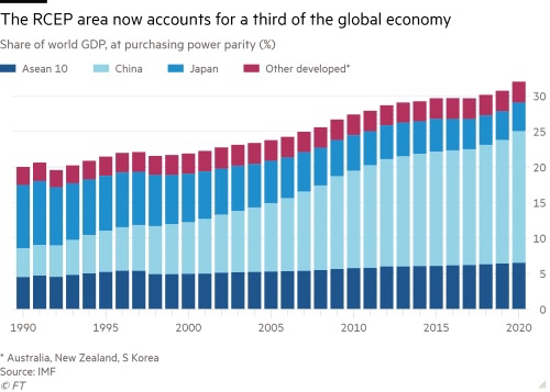 The deal would have been even larger but India withdrew from the talks in 2019 and has so far refused to come back, heightening concerns among some signatories that China will dominate the pact.
