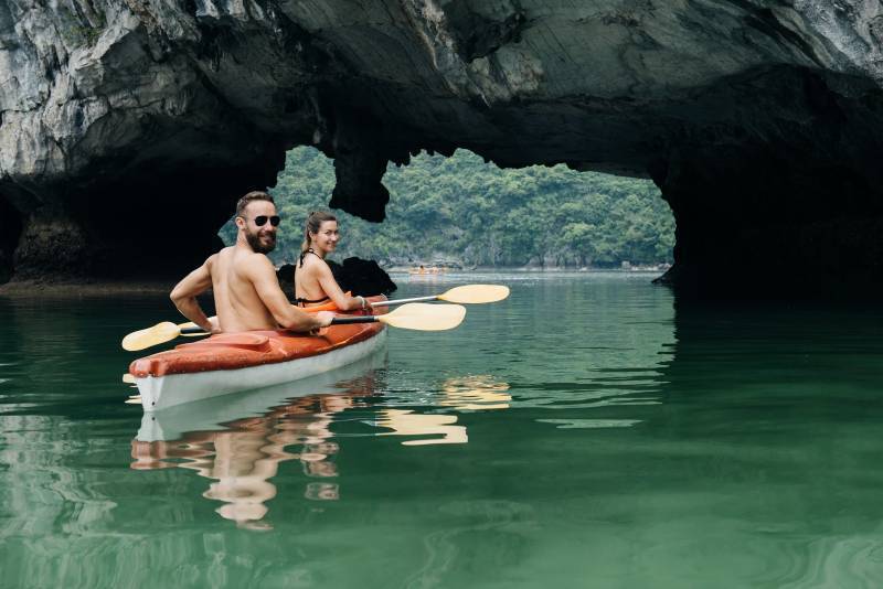 Halong Bay tours usually start around 50-100 USD for two-day trips which are inclusive of all meals, island tours, complimentary wine, cooking classes and kayaking.
