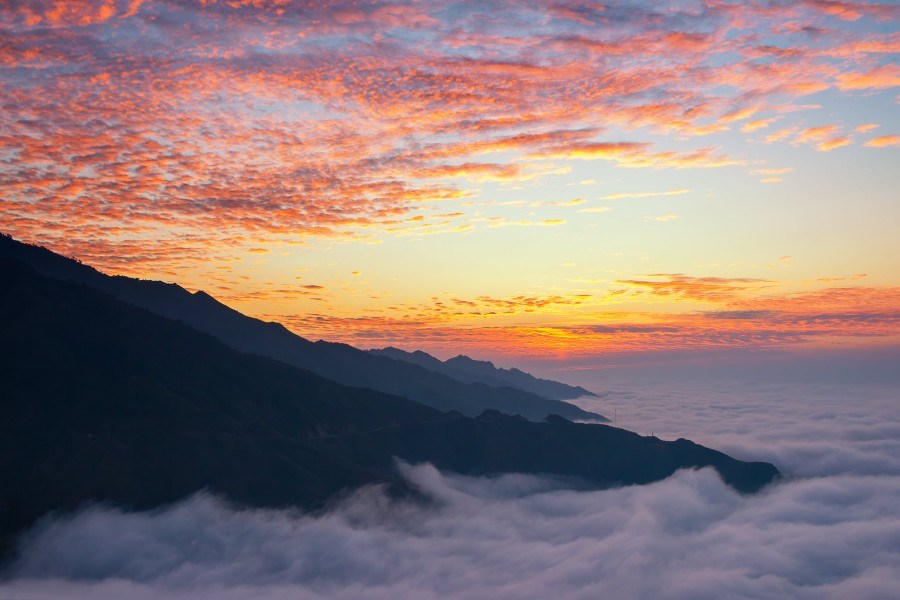 In the spring and the winter, clouds go down to Ta Xua all day, overwhelmed with the paths and spaces of villages, mountains, forming beautiful white clouds. In the summer, after the rain, the sea of clouds appeared, lasting several hours, until 11 am it still has not melted. At that time, the sun shining on the sea of clouds creates the scene as a fanciful place, appearing borders like gold in the horizon.