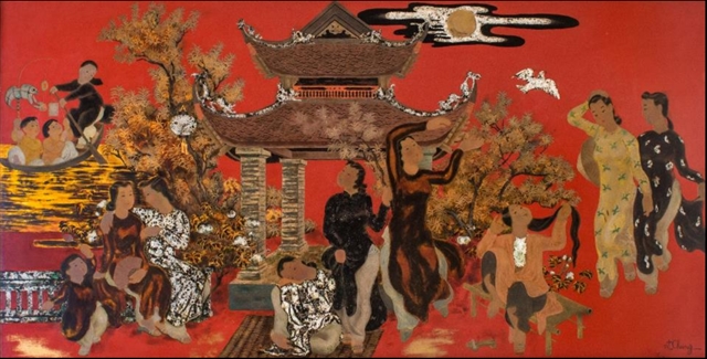 | ‘Autumn moonlight’, a lacquer painting by Nguyễn Tiễn Chung (1914-1976). |