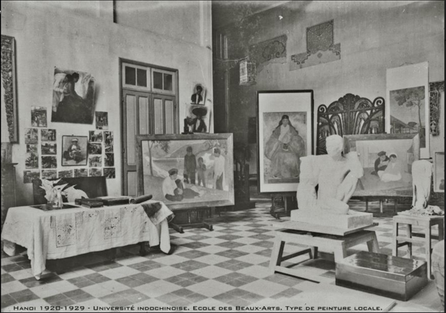 | A display at the Indochine School of Fine Arts between 1920-1929. Photo courtesy of the VNUFA |